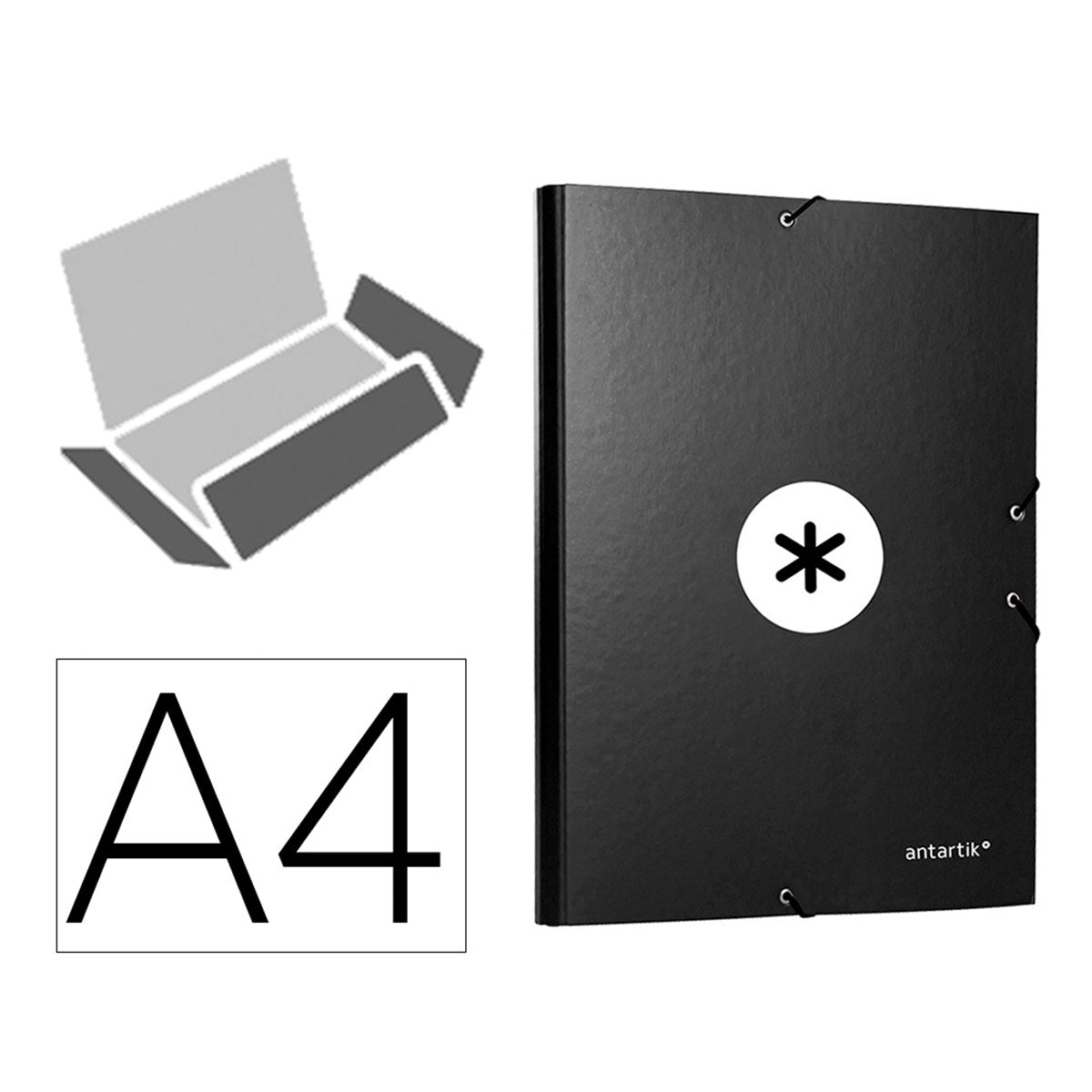 ANTARTIK - Carpeta Escolar A4 con 3 Solapas y Cierre de Goma. Negro