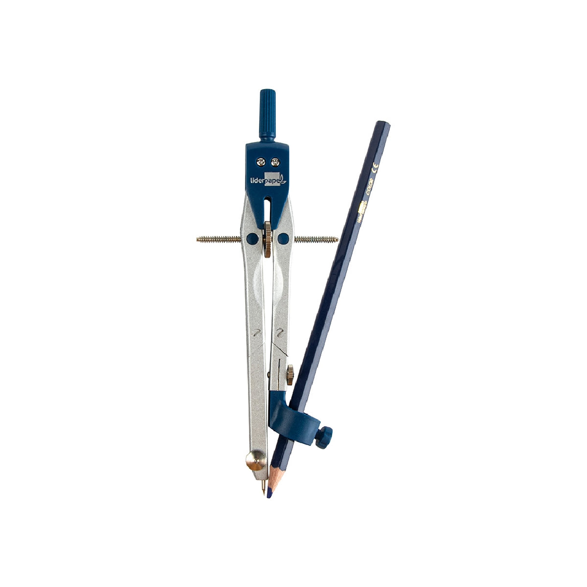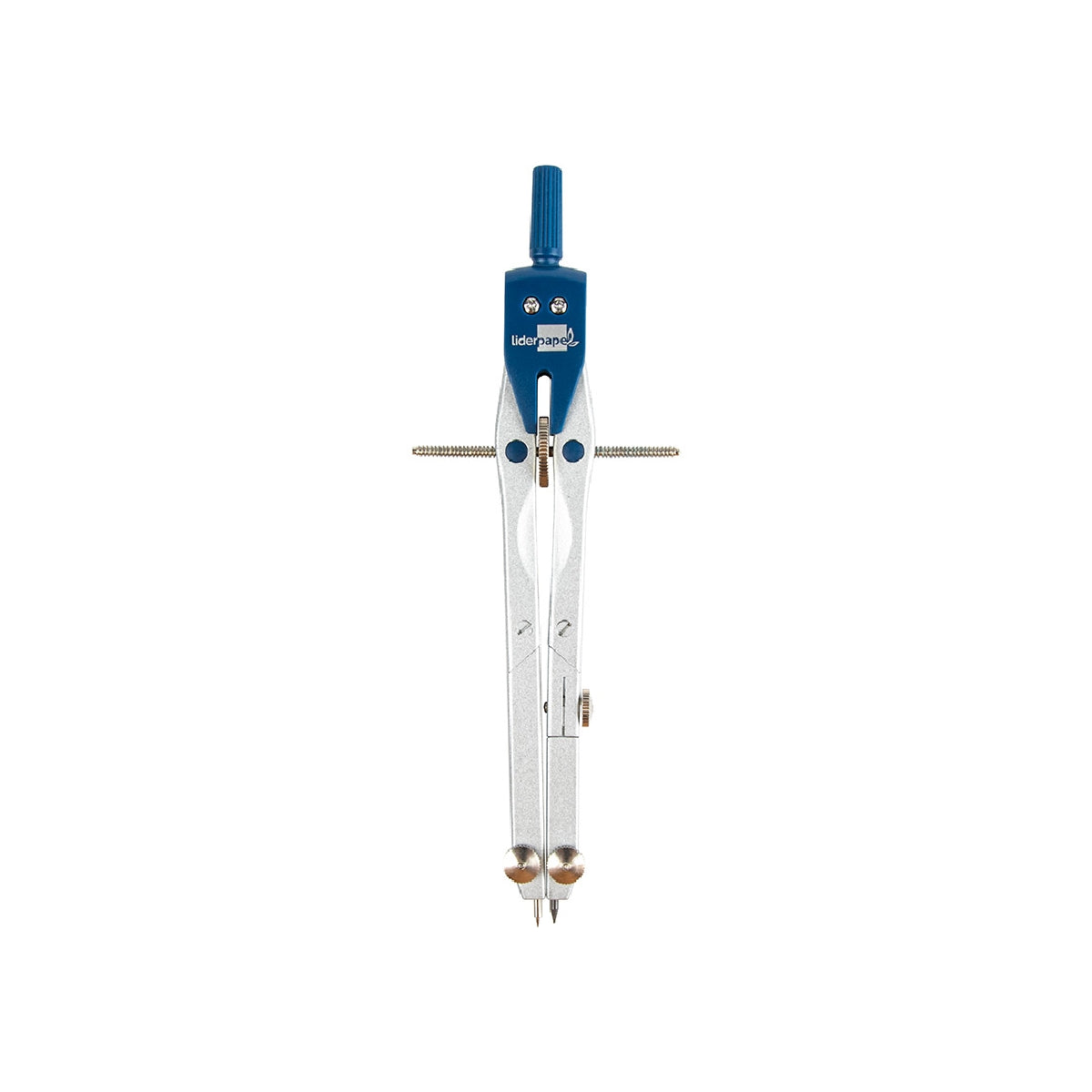 Compás micrométrico con minas de 2 mm y adaptador de rosca. Articulado en los dos brazos. Longitud: 17 cm. Circunferencia de 38 cm.