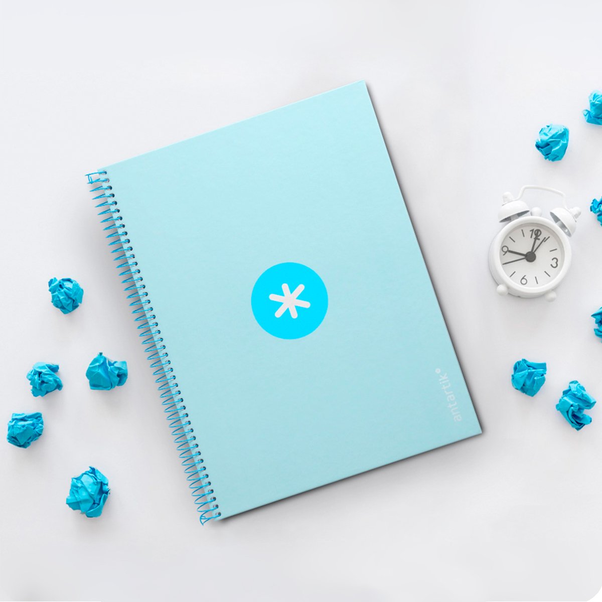 Cuaderno espiral microperforado Antartik en formato DIN A4 con 80 hojas de 90 gr de grosor. Enmarcado con cabecera para la identificación del tema, fecha, etc. Con 1 banda de color a juego para separar asignaturas y 4 taladros de archivo compatibles con carpetas de 2 y 4 anillas y archivadores palanca. Hojas microperforadas con iniciador de desgarre para poder arrancarlas fácilmente y archivarlas.