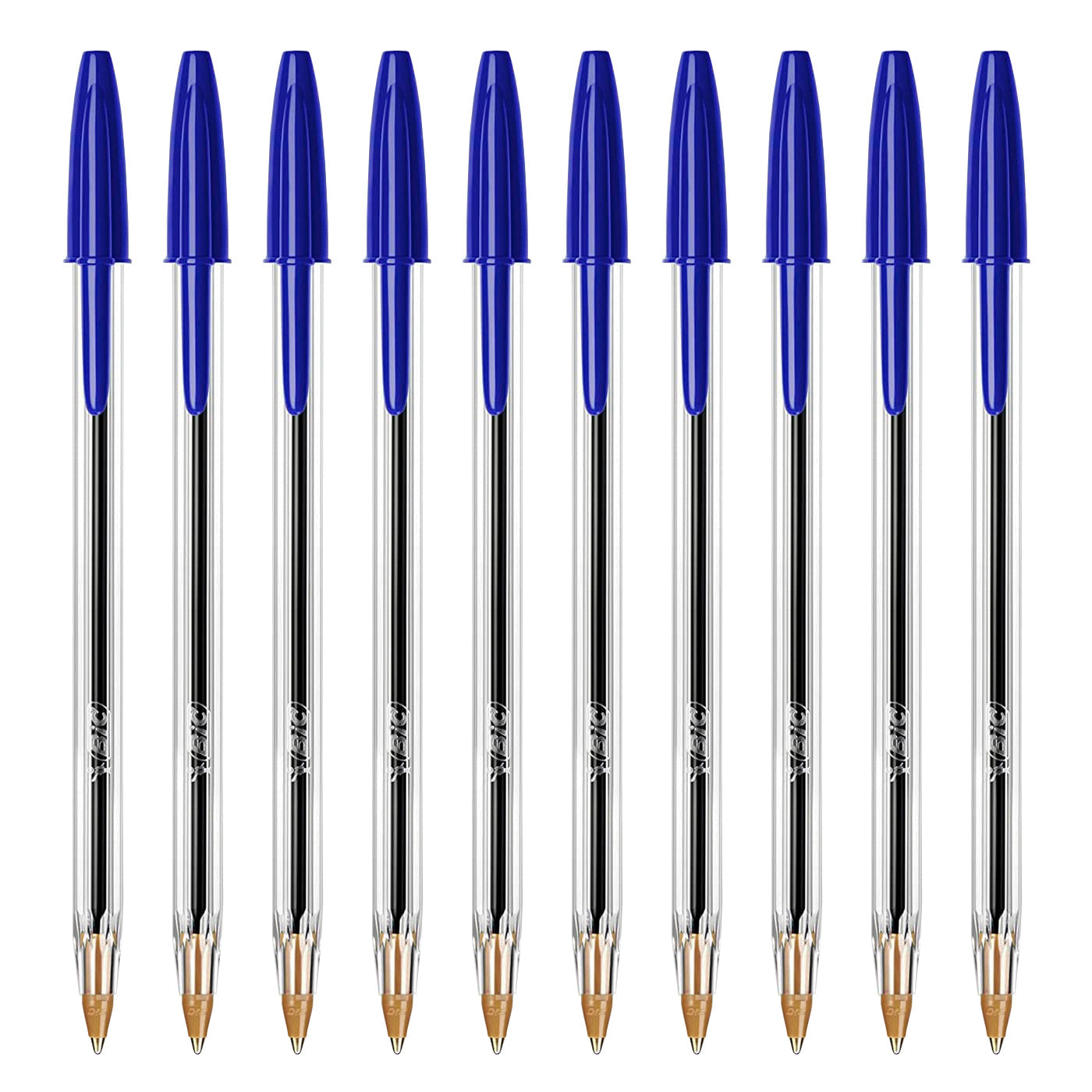 Set de 10 bolígrafos BIC Cristal Original con punta media de 1.0 mm y trazo de 0.4 mm, que se desliza por el papel con suavidad para ofrecer una escritura sin manchas. Diseño eficaz, sencillo y fiable con un cuerpo transparente que permite comprobar en todo momento el nivel de tinta.