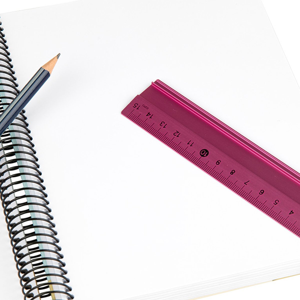 Regla Liderpapel 15 cm aluminio en colores surtidos. Base milimetrada y biselada.Maxima Calidad y formato especial para estuches escolares. Disponible es cuatro colores, Azul, Rosa, Dorado y Plata.