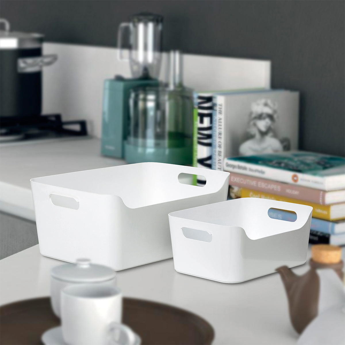 · DISEÑADO PARA HACERTE LA VIDA MÁS CÓMODA Y PRÁCTICA: Su forma de cesta profunda los convierte en organizadores prácticos para tener lo que necesitas siempre a mano y a la vista. Además, cuenta con dos asas para una mayor ergonomía.