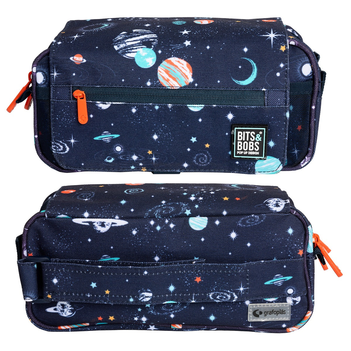 Grafoplás Design - Estuche Portatodo Triple con Solapa para Material Escolar. Cosmos