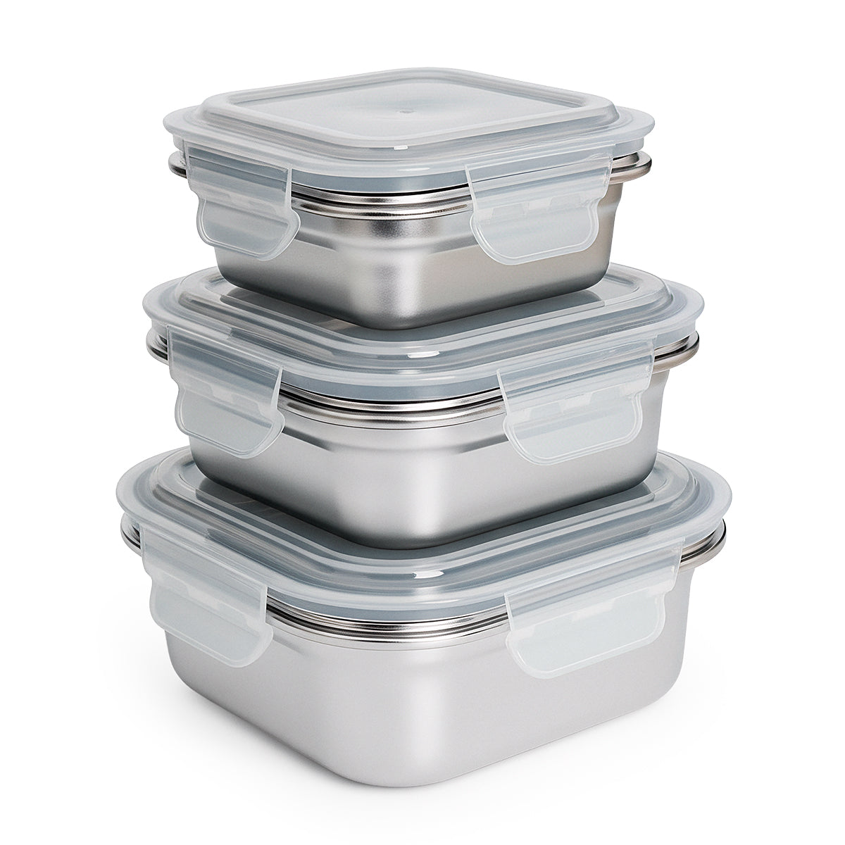Recipiente hermético cuadrado de 0.8L IBILI Keepklin fabricado en acero inoxidable 18/10 especial y con tapa de polipropileno, especialmente resistente a la oxidación y las bacterias, apto para microondas. Higiénico, no transmite olores ni sabores a los alimentos. Fácilmente apilables y encajables entre sí en algunos formatos, ahorran espacio en tu cocina.