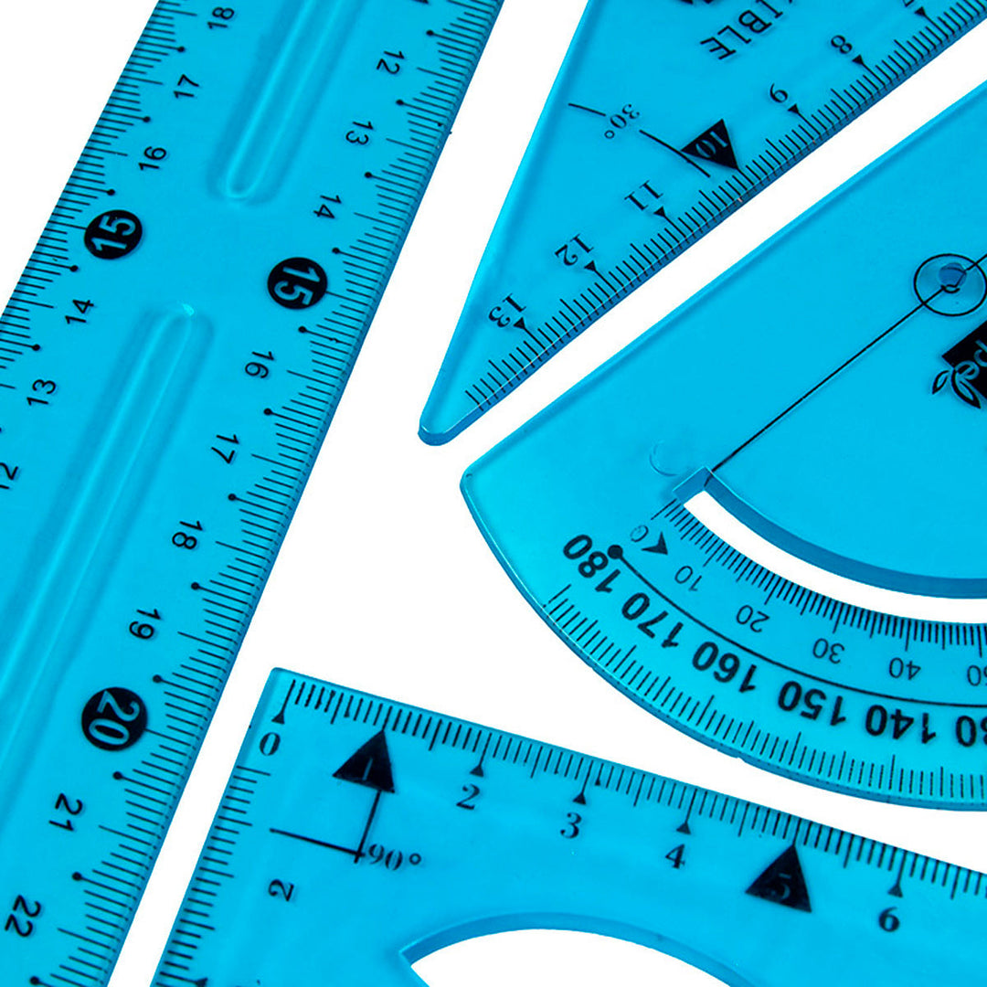 Todas las piezas son transparentes, biseladas para una marca más cómoda, y graduadas en milímetros. ¡Ideales para cualquier trabajo de dibujo técnico!
