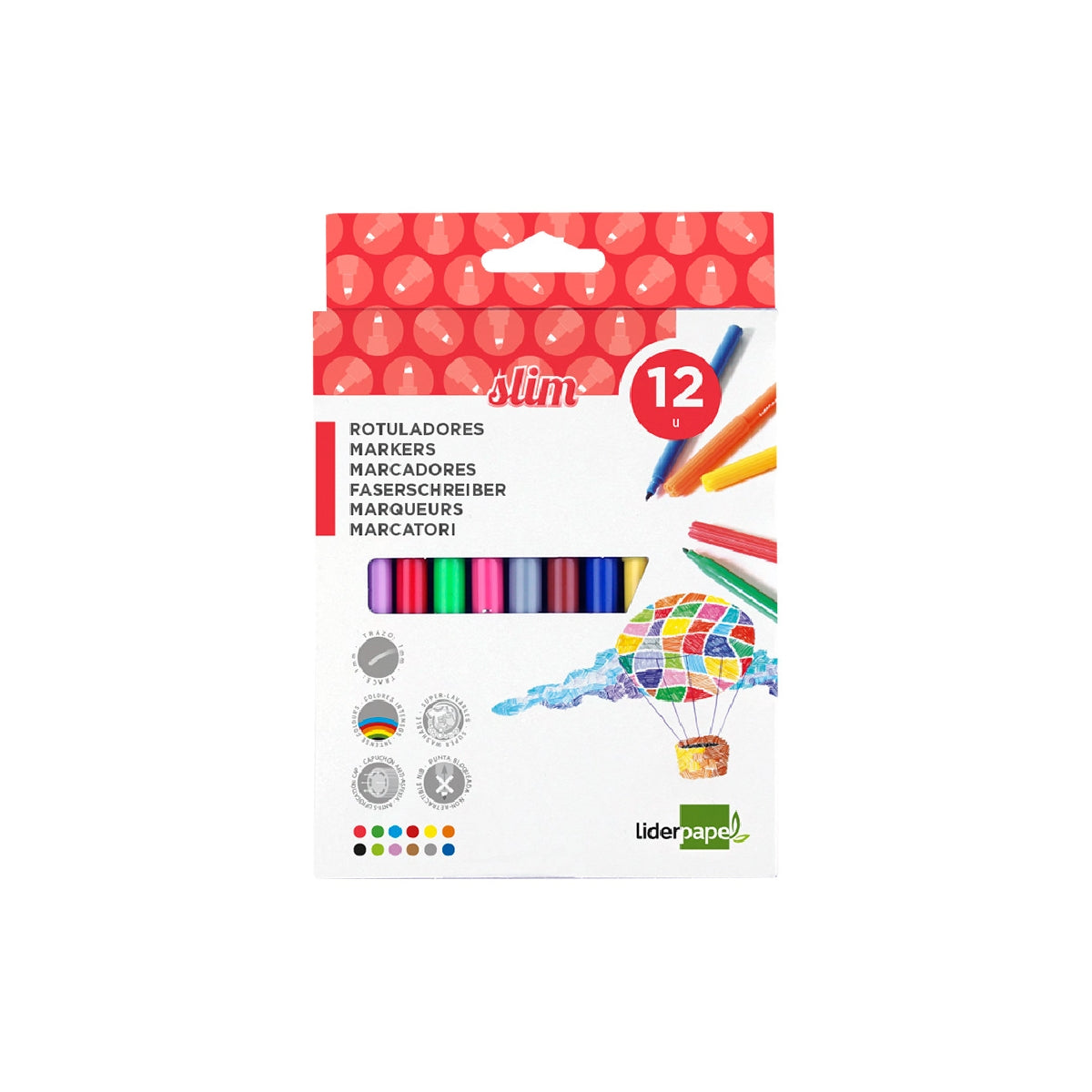 Rotulador con punta de nylon de 2 mm de diámetro. Tinta a base de agua y colorantes alimentarios inocuos y lavables. Permite hasta 800 m de escritura. Punta bloqueada. Tapón ventilado. La caja.