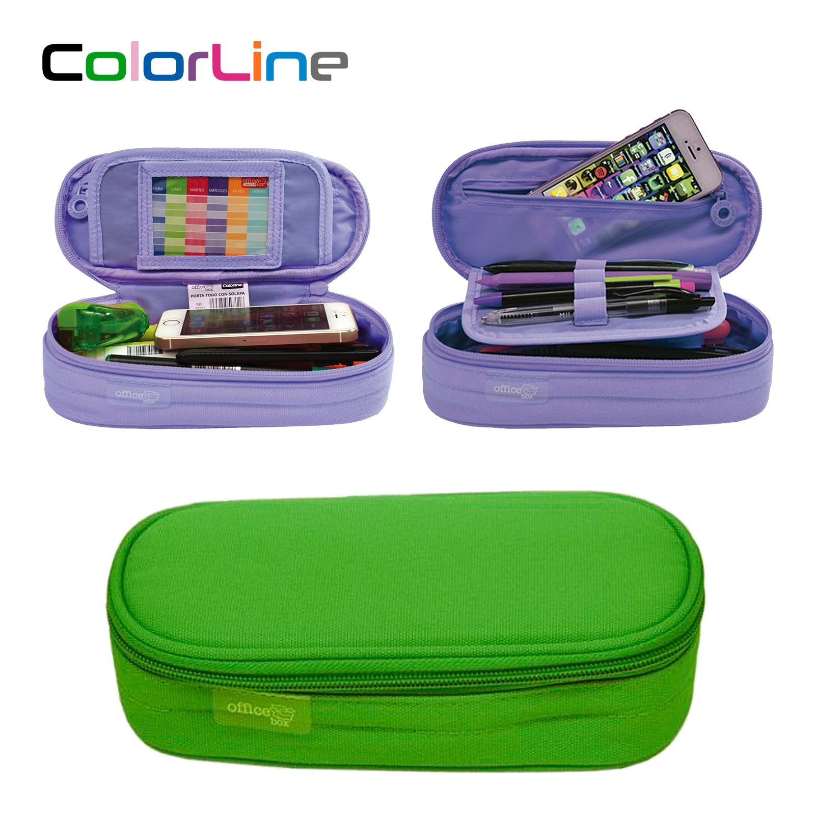 Mega - Estuche Portatodo Escolar Ovalado Multiuso con Solapa. Verde