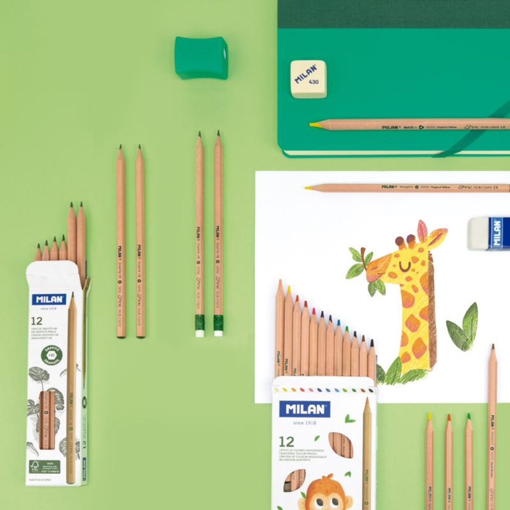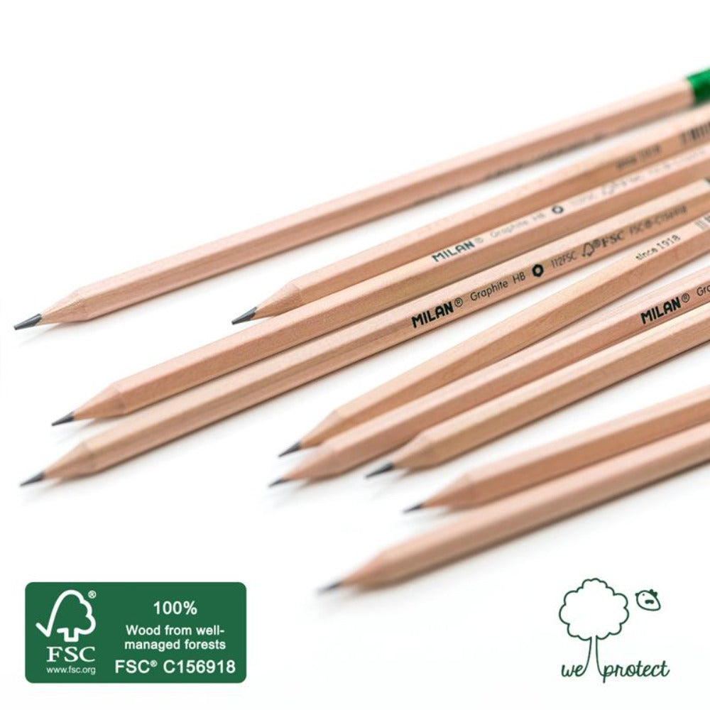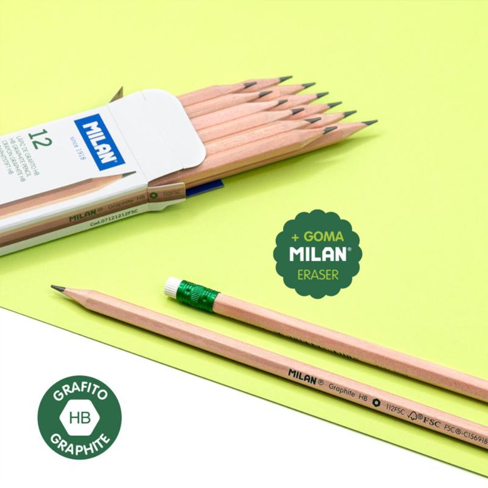 MILAN - Caja 12 Lápices de Grafito HB con Goma, Madera Certificada FSC®