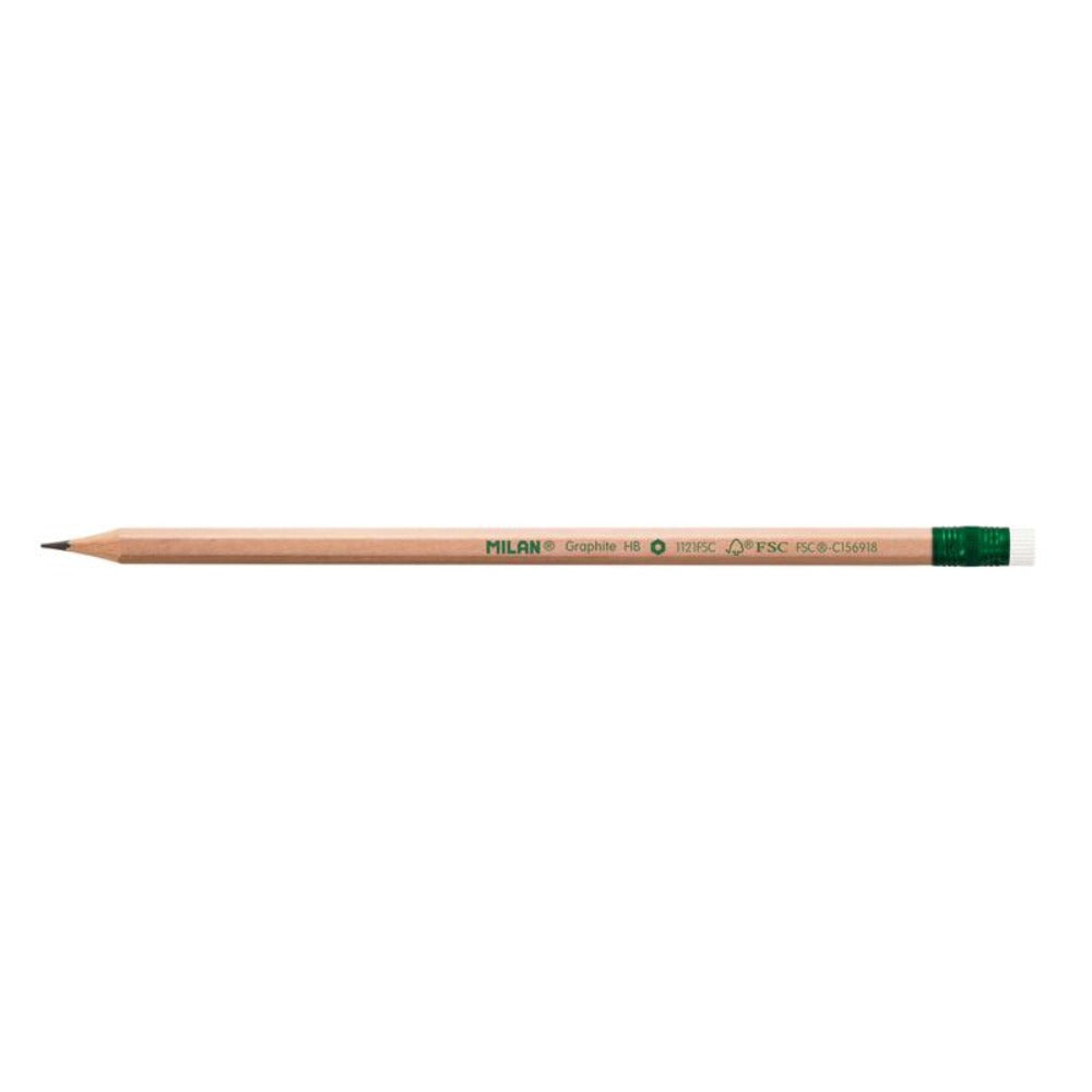MILAN 071212112FSC - Caja 12 Lápices de Grafito HB con Goma, Madera Certificada FSC®