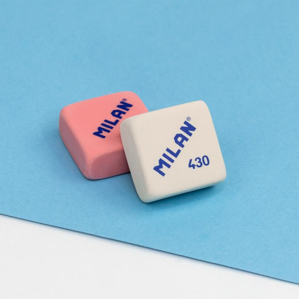 Expositor surtido de 30 gomas 430 de Milan, suaves de caucho sintético tipo "miga de pan" cuadrada. Para borrar una amplia gama de lápices de grafito sobre toda clase de papeles. La clásica goma MILAN 430 es una de las más vendidas. Goma de recambio para cualquier Afilaborras o Eraser Brush de la familia COMPACT.