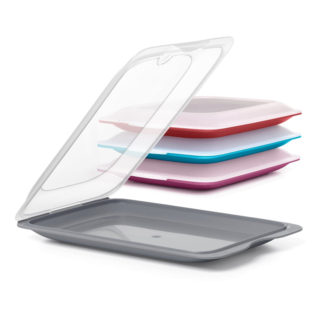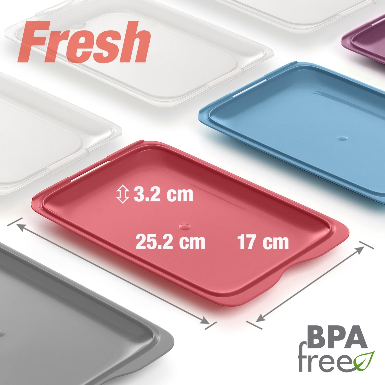 Cuentan con una tapa extraíble que te permite usar el recipiente también como bandeja para servir. De ésta manera, únicamente tendrás que sacarlo de la nevera, ponerlo en la mesa sin necesidad de usar otro plato, y una vez terminado, volver a guardarlo en la nevera con la tapa puesta.