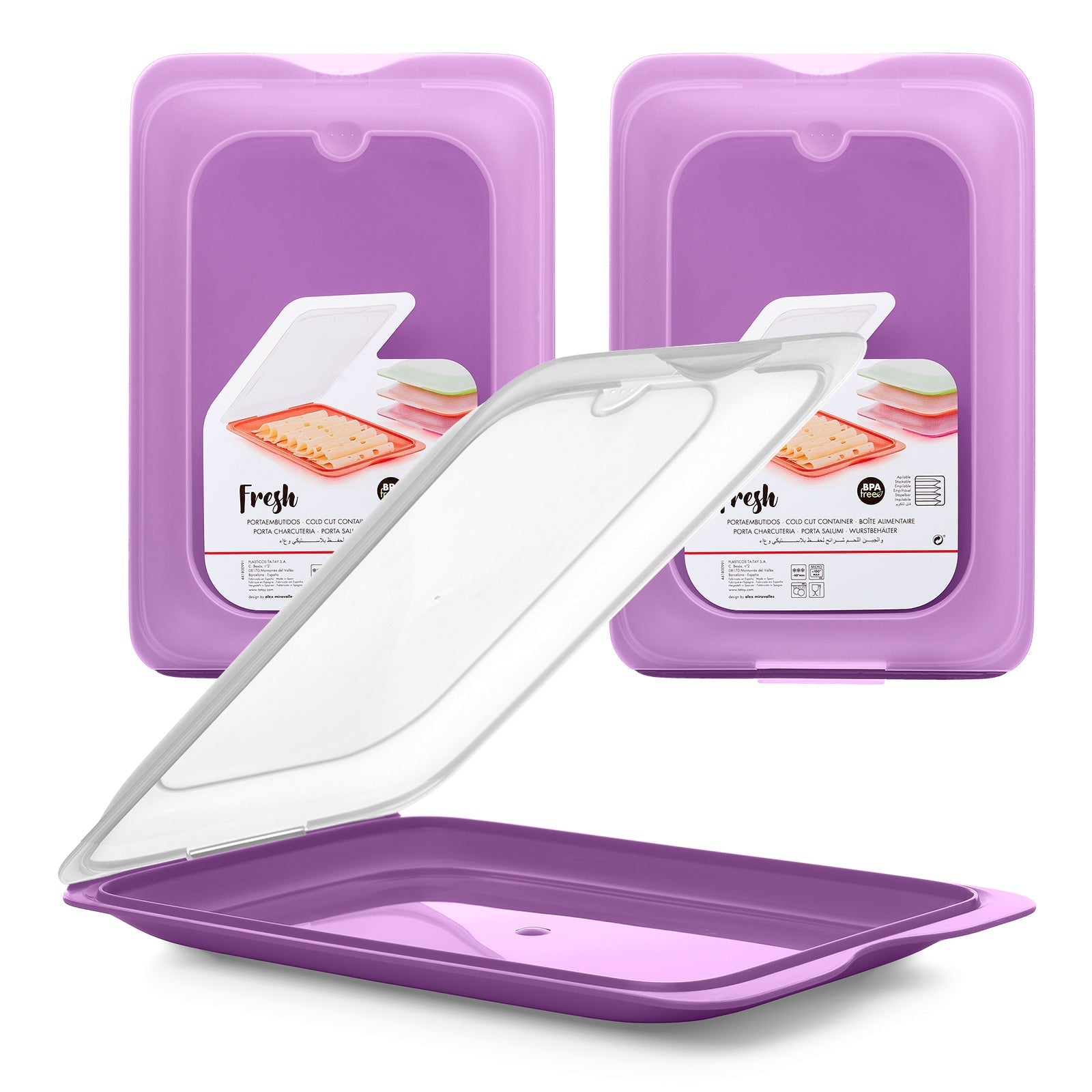 Recipiente porta embutidos TATAY con sistema Fresh para una conservación óptima de las lonchas de embutidos y quesos en tu nevera. Además, es ideal para transportar alimentos y fiambres, como el jamón cocido. Medidas: 25.2 x 17 x 3.2 cm.
