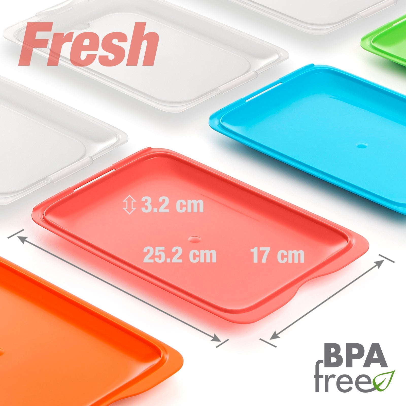 Cuentan con una tapa extraíble que te permite usar el recipiente también como bandeja para servir. De ésta manera, únicamente tendrás que sacarlo de la nevera, ponerlo en la mesa sin necesidad de usar otro plato, y una vez terminado, volver a guardarlo en la nevera con la tapa puesta.