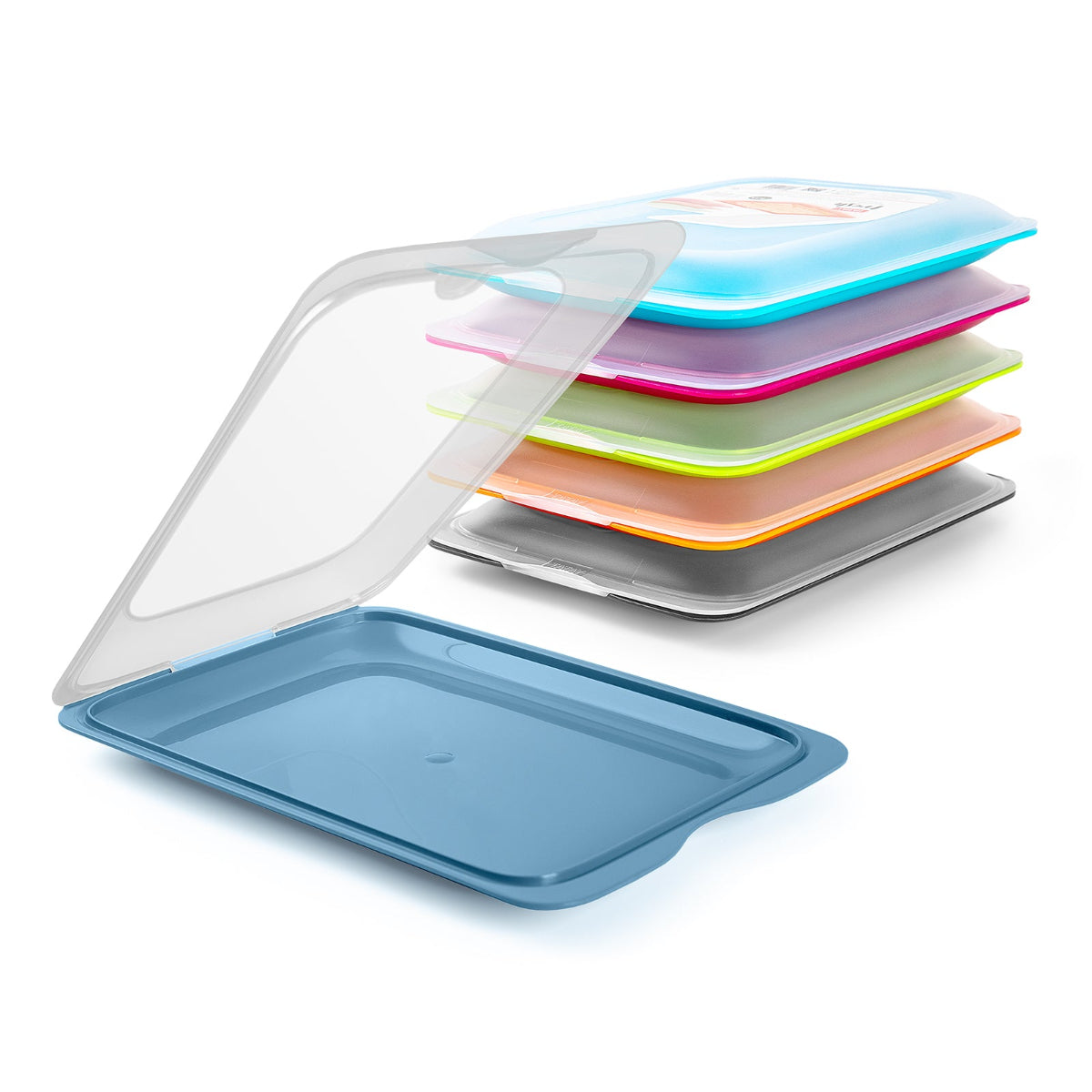 Cuentan con una tapa extraíble que te permite usar el recipiente también como bandeja para servir. De ésta manera, únicamente tendrás que sacarlo de la nevera, ponerlo en la mesa sin necesidad de usar otro plato, y una vez terminado, volver a guardarlo en la nevera con la tapa puesta.
